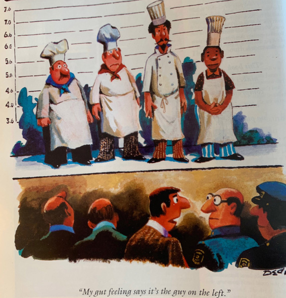 He agreed to provide me a cartoon for each edition of the magazine. However, he was not sure if he could come up with a cartoon that would carry a theme of dining, but he would try. Every three months I would meet him in his studio. He would show me several ideas he sketched out and he asked me to select the one I liked.