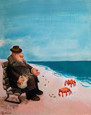 In the early nineties I introduced myself to famed cartoonist, Eldon Dedini (1921-2006) at his home in Carmel, California. I had known of his work for many years, respected him greatly and hoped to interest him in contributing his cartoons in my magazine, Adventures In Dining. His wife, Virginia, brought me coffee in Eldon's studio. We sat facing one another surrounded by stacked magazines on the floor adjacent to his drawing table. He was gracious and inviting.