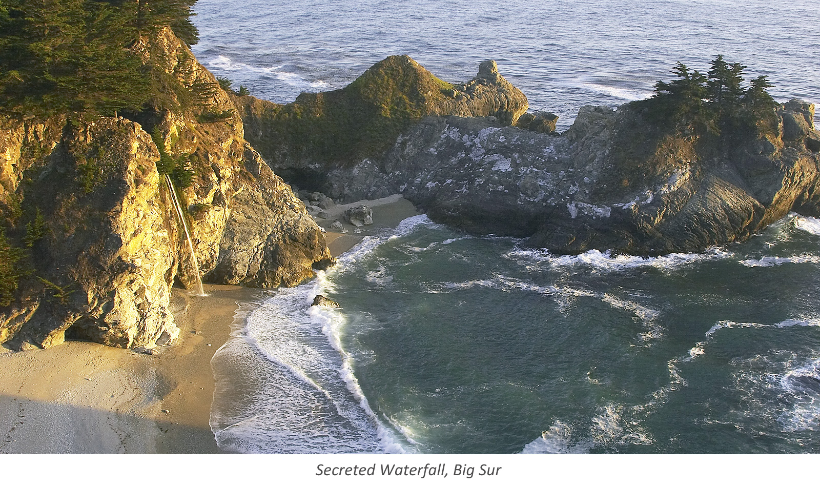 I think it was the second day of workshops I suggested to Dagma that we skip the afternoon of yoga that was scheduled and permit me to show her the coastline of Carmel and Big Sur. "You must not miss this natural wonder—like no other coastline in the world." She agreed. So, dressed for a sunny December day I opened the sunroof of my old, cream colored, 450 SEL, turned up the heat to keep our feet warm, and after several cliffside stops for breathtaking views of distant surf, rocky shoreline and a clandestine waterfall we ended up at Ventana Inn for a three hour lunch with a 180-degree patio view of rolling hills and golden grasses spilling into the Pacific. We talked of our discoveries, our lives past and present—our children, the thrills and successes of our lives that had framed us, and what was moving us forward.